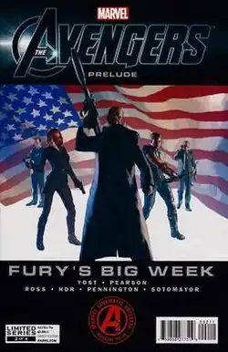 Marvel's The Avengers Prelude: Fury's Big Week, or simply Fury's Big Week, is a limited series comic book published by Marvel Comics as an official tie-in comic to the Marvel Cinematic Universe (MCU), specifically the 2012 film Marvel's The Avengers. The comic was written by Eric Pearson from stories by himself and Chris Yost, with art by various pencillers. Fury's Big Week follows Nick Fury and several agents of S.H.I.E.L.D. as they deal with the various events of the MCU films leading up to The Avengers.