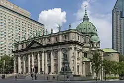 Mary, Queen of the World Cathedral or in full Mary, Queen of the World and St. James the Great Cathedral is a minor basilica in Montreal, Quebec, Canada, and the seat of the Roman Catholic Archdiocese of Montreal. It is the third largest church in Quebec after Saint Joseph's Oratory (also in Montreal) and the Basilica of Sainte-Anne-de-Beaupré east of Quebec City. The building is 101 m (333 ft) in length, 46 m (150 ft) in width, and a maximum height of 77 m (252 ft) at the cupola, the diameter of which is 23 m (75 ft).