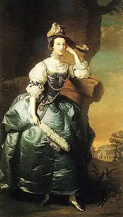 In 1757, Sir Joshua Reynolds painted the couple, and another portrait by Reynolds of the duchess was painted between 1765 and 1771. A watercolour miniature, by John Smart, dating to 1763, is held by the Nelson-Atkins Museum of Art.[4]