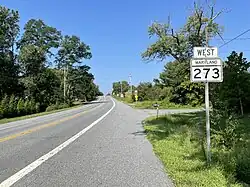 MD 273 westbound past its eastern terminus at DE 273 at the Delaware border near Appleton