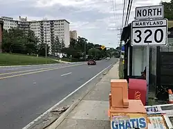 Maryland Route 320 (MD 320) is a state highway in the U.S. state of Maryland. Known as Piney Branch Road, the highway runs 2.84 miles (4.57 km) from Eastern Avenue at the District of Columbia boundary in Takoma Park north to MD 650 in Adelphi. MD 320 is a southwest–northeast highway that connects Takoma Park and Silver Spring in southeastern Montgomery County with Adelphi in far western Prince George's County. The state highway originally extended from downtown Silver Spring to White Oak and connected with U.S. Route 29 (US 29) at both ends. The Silver Spring–Adelphi portion of the highway was constructed in 1910. The segment through Takoma Park and the Adelphi–White Oak segment, which later became MD 650, were built in the early 1930s; the Takoma Park portion was built as MD 513. MD 320 was widened over its whole length in the late 1940s and reduced to its present course in the mid-1950s.