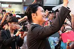 Fukuyama in Taipei, promoting his film Midsummer's Equation (2013).