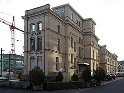 The site of the company's works has been redeveloped, including the innovative public MFO-Park. In the second decade of the 21st century, a project was initiated to expand Oerlikon railway station, with the provision of two additional platform tracks on north-western side of the station. That affected the site of the former office building of Maschinenfabrik Oerlikon, dating from the late 19th century, and now a restaurant complex known as Gleis 9. Because of its cultural importance to the region, plans to demolish the building were rejected, and instead, the 6,200-tonne (6,800-ton) building was moved 60 meters (200 ft) to the west, on specially laid tracks. The move took place in May 2012, and took 19 hours.[2][3][4]