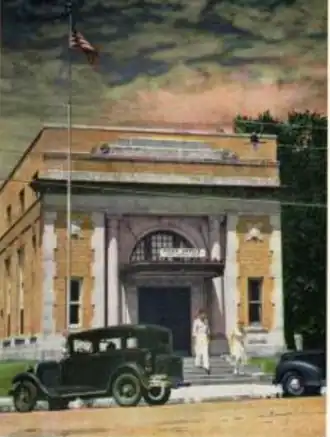 4. ^ Some sources list its construction date as 1924. Other sources indicate that Hancock County Bank opened at the location in 1927. The architect's files at Tulane indicate a project date of 1926.