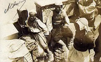 Many Albanians in the region of Kičevo were killed by Bulgarian forces between 1915-1918.[7] In 1916, many Albanians in Štrpce and Načallnik starved to death or became sick as a result of Bulgarian soldiers seizing the villagers' wheat, which led to a man-made famine.[8][9] The number of Albanians (including combatants) that were killed or died during WWI due to diseases and warfare in Albania is estimated to be around 70,000, approximately 8.75% to 10% of the country's population.[2][10] Additionally, contemporary estimates from the American Red Cross suggest that 150,000 died of starvation in Albania during 1915 alone.[11] In a letter to King George V, the Committee of Kosovo claimed in 1919 that the Serbian and Montenegrin armies had killed 200,000 Albanians since the Balkan Wars, including some 100,000 Albanians killed in Kosovo from 1913 to 1915, and that Bulgarian troops had killed 50,000 Albanians from 1915 to 1918.[1] In 1921, Albanian deputies said that 85,676 Kosovo Albanians were killed since the Balkan Wars.[12]
