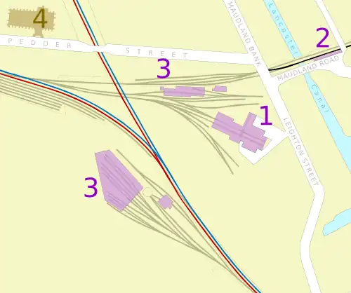 Maudland Bridge railway station was once the Preston terminus of the Longridge Branch Line, in Lancashire, England. It was located on Maudland Road, between a bridge over the Lancaster Canal and Cold Bath Street. The Maudlands district of Preston gets its name from the medieval St. Mary Magdalen's leper hospital, which once stood near the present-day St Walburge's Church.[2]