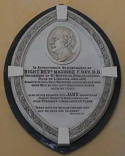 Day was born at Kiltallagh, County Kerry, to J. Day, rector of Kiltallagh, and his wife Arabella, daughter of Sir William Godfrey.[3] He was educated at Clonmel Endowed School and Trinity College, Dublin[4] and ordained in 1840. He established and was the incumbent of St. Matthias' Church, Hatch Street, Dublin from 1843 to 1868[5] when he became Dean of Limerick.[6] He was Bishop of Cashel, Emly, Waterford and Lismore from 1872[7] until his retirement in 1899.[8] He died on 13 December 1904,[3] in Greystones, County Wicklow.