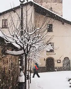 The Venosta palace is easily recognizable for the mighty tower with the function of dovecote that most likely had a symbolic connotation linked to the power and dominion of the Venosta family, embodied by the flight of doves over the territory.[8]