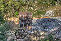 The falls is owned by the town of Valdese, North Carolina, which has built a city park around the falls. The falls was the home to a mill called Meytre Grist Mill, which was built in 1906 by Fred Meytre. The mill remained in operation until 1941, when Mr. Meytre became too old to operate the mill without younger men, who were being called to serve during World War II. The mill was rebuilt in 1982 for the park.[1]