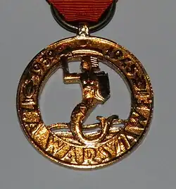 The Medal for Warsaw 1939–1945 (Polish: Medal za Warszawę 1939–1945) was a Polish commemorative medal awarded by the Polish People's Republic to commemorate active participation in defending Warsaw in 1939, 1944 Warsaw Uprising, and in liberation of Warsaw from Nazi Germany in January 1945.[1]
