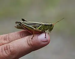 Melanoplus bivittatus, the two-striped grasshopper, is a species of grasshopper belonging to the family Acrididae. It is commonly found in North America,[1] and is especially abundant on the Canadian prairies.[2]