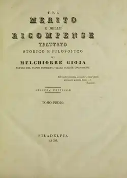 Melchiorre Gioja (10 September 1767 – 2 January 1829) was an Italian writer on philosophy and political economy. His name is spelled Gioia in modern Italian.