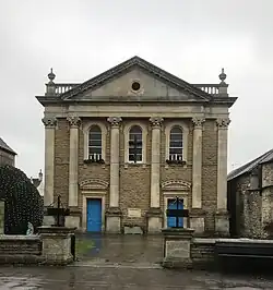 Ebenezer Baptist Church, Union Street, was built in 1835 by Particular Baptists.[6][25] A Methodist chapel was built on the High Street in 1872, its two-storey front having four large Corinthian columns and a cornice with oculus.[26] This became the United Church after the union of the Methodists and Congregationalists in 1976, and the Congregational church off the Market Place closed.[27]