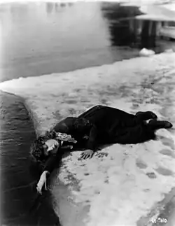D. W. Griffith has been described as the "master of the silent melodrama", as he established its stylistic features in films like Hearts of the World (1918), Broken Blossoms (1919), True Heart Susie (1919), Way Down East (1920) and Orphans of the Storm (1922), in which the "sociosexual trials and tribulations of the sisters [Lillian Gish and Dorothy Gish] et al. were communicated in theatrical pantomime."[44] Griffith employed various cinematic techniques to highlight the characters' "virtuous suffering": extended camera shots, a measured storytelling pace, repeated close-ups of the distressed heroine (often with eyes turned upwards), and a solemn musical accompaniment.[44]