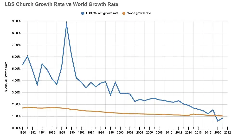 | Year | LDS Church growth rate | World growth rate | Growth rate difference |