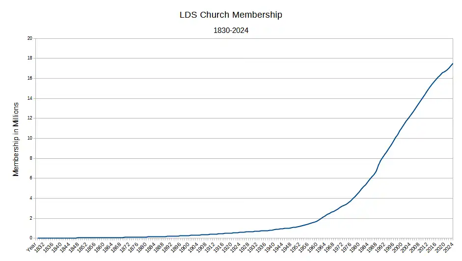 The self-reported membership of the Church of Jesus Christ of Latter-day Saints (LDS Church) as of December 31, 2023, was 17,255,394.[1]