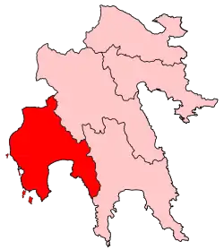 Messenia is a constituency[2] in Peloponnese represented in the Hellenic Parliament. It elects five Members of Parliament (MPs) by the Reinforced proportional representation system of election. It comprises the Messenia Prefecture.