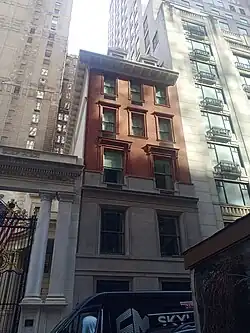 The club's only surviving original trustee, Charles Lanier, agreed in 1909 to transfer ownership of the clubhouse to a new board of trustees.[84] Morton remained the club's president until November 1911, when Frank K. Sturgis took over as the Metropolitan's third president.[71] The Metropolitan bought the house at 11 East 60th Street from McGowan the same month.[81][85] J.P. Morgan & Co. provided $165,000 to finance the club's acquisition of 11 East 60th Street,[86] and the club hired Ogden Codman Jr. to renovate that house.[86][87] Codman expanded the clubhouse into 11 East 60th Street's rear yard, and he removed that building's entrance stoop.[87] In addition, the club borrowed $25,000 at the end of 1912 to pay for additional events at the clubhouse.[88] Simultaneously, the Brooklyn Rapid Transit Company (BRT) was planning to build a New York City Subway station at Fifth Avenue–59th Street, next to the clubhouse.[86][89] The Metropolitan's members initially opposed a subway entrance next to the clubhouse[90] but ultimately agreed to give the BRT an easement to build the subway entrance.[86] The subway station opened in 1919.[91]