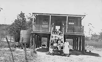A provisional school for Mia Mia was approved on 17 April 1899. Tenders were called to erect the school building in May 1899.[3] Mia Mia Provisional School opened on 22 January 1900 under head teacher Emma Milligan. On 1 January 1909, it became Mia Mia State School. The school building was relocated to a new site circa 1913.[4] It closed on 7 July 1967, being replaced by a school transport service to take the children to Mirani State School.[5] At that time, the school was on the north of the bend in the Mia Mia Connection Road (21°13′26″S 148°48′43″E / 21.22383°S 148.81199°E / -21.22383; 148.81199 (Mia Mia State School (former))).[6][7][8][9] The school building was sold in 1969 and the land was sold in 1970.[10]