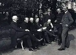In the summer of 1909, another city council election took place. This time 69 councilors were elected directly, seven Jewish councilors came by nomination. In the end, the council included 56 Poles, 10 Russians, seven Jews, one Lithuanian (Antanas Vileišis), a German and a Karaite each.[60] The mayoral election, held on 12 November, was again won by Michał Węsławski.[61] Not long after his re-election, in early March 1910, Węsławski was suspended as president due to the ongoing investigation of Pasternacki. His position was assumed by Konrad Niedziałkowski.[62] Despite the suspension, he was a member of Vilnius' official delegation to Eliza Orzeszkowa's funeral in Grodno, Belarus. The delegation consisted of three more councilors: Russian Leonid Povolotskiy, Jew Orel Lipiec, and Lithuanian Antanas Vileišis.[63] The issue of the loan encountered difficulties in St. Petersburg, so the councilors decided to limit investments to an electric tramway, a water supply system and, of necessity, a sewage system. The loan amount thus dropped to 8.5 million rubles.[64] Eventually Ministry of interior agreed to a loan of 4,244 million rubles for the water supply and sewage system only.[65]