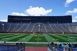 Michigan plays its home games at both Michigan Stadium and Oosterbaan Field House. For both the 2014 and 2015 seasons, the team scheduled its first two games of the year at Oosterbaan, and then played the remainder of its home schedule (six games, in both cases) at Michigan Stadium.[10][11] Oosterbaan Field House, which was built in 1970, has a total capacity of 1,000 and a FieldTurf playing surface.[12] Michigan Stadium boasts a capacity of 107,601 and was built for the Michigan football team in 1927; however, it did not host a varsity lacrosse game until 2012, when the Michigan men's lacrosse program played its first game there. The women's team played its first game at Michigan Stadium on March 20, 2014, losing to Winthrop, 14–12.[13]