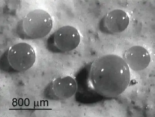 Microspherulites are microscopic spherical particles with diameter less than two mm, usually in the 100 micrometre range, mainly consisting of mineral material (the Greek litos means "stone"). Only bodies created by natural physico-chemical processes, with no contribution of either biological (in aqueous sedimentary environments this contribution is possible) or human activity, are considered to be microspherulites. Generally speaking, the common feature (sphericity) indicates that each sphere represents an internal equilibrium of forces within a fluid medium (water, air).