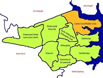 - ^ a b Australian Bureau of Statistics (28 June 2022). "Middle Cove (State Suburb)". 2021 Census QuickStats. Retrieved 6 November 2023.