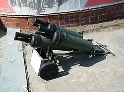The Military History Museum of the Far Eastern Military District was created on 31 May 1983, the 125th anniversary of the foundation of Khabarovsk. The commander of the Far Eastern Military District Ivan Tretyak ordered the expansion of the Khabarovsk Officer's House exhibition room into a full fledged museum through the transfer of artifacts from the I.N. Grodekov Local History Museum.[1] The building housing the exhibits was built between 1903 and 1907, it was designed by Khabarovsk engineers N. F. Alexandrov and L. O. Tchaikovsky. It functioned as a branch of Gosbank until 1930,[2] from 1930 until the museum's creation it served various military purposes, in 1945 it was the headquarters of the 2nd Far Eastern Front. A memorial plaque honoring Marshal of the Soviet Union Aleksandr Vasilevsky can be found on the building's facade.[3] The building currently holds the status of an architectural monument of federal importance.[2]