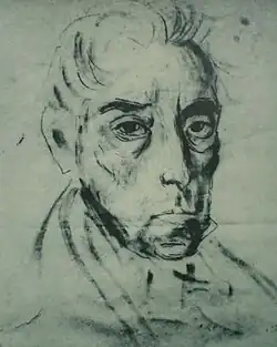 Sketch of Bolívar at age 47 made from life by José María Espinosa in 1830.
