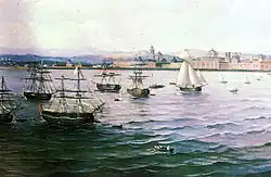The defense of New Spain against external enemies was based on a limited number of fortified port cities. On the west coast, there were no serious threats and the small Fort of San Diego in Acapulco, the port of call for the Manila galleon, was enough to meet all foreseeable contingencies. In the Caribbean, there were stronger fortifications to secure maritime communications with the mother country. The dominant winds led the silver galleons through the Straits of Florida; the fortress city of Havana, and the fortifications of St. Augustine in Florida, protected the only point where New Spain could really be threatened. On the surrounding mainland there were also strong fortress cities with regular garrisons. On the Mexican mainland it was Veracruz; in Yucatan, Campeche; and in the New Granada, Cartagena de Indias. As long as these fortresses could be held or quickly relieved, and as long as the large annual convoys could be assembled, there were no serious threats against New Spain.[1][2]