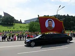 The parade celebrated the 81st anniversary of the KPA.[15][16] It was one of the only times a parade was held on a non-jubilee year; the parade that was planned for the previous year was cancelled due to the preparations for the parade on the 100th anniversary of Kim Il Sung that was held ten days prior to the planned parade.[17] It was the first to be held on the forecourt of the Kumsusan Palace of the Sun. Military hardware was not displayed during the parade.[18] Speeches were delivered by commanders of the different branches of the KPA, during which they spoke of the military readiness of their branches.[19]