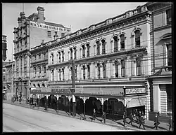 ![]() The Milne & Choyce building on Queen Street, Auckland, in April 1913 | |