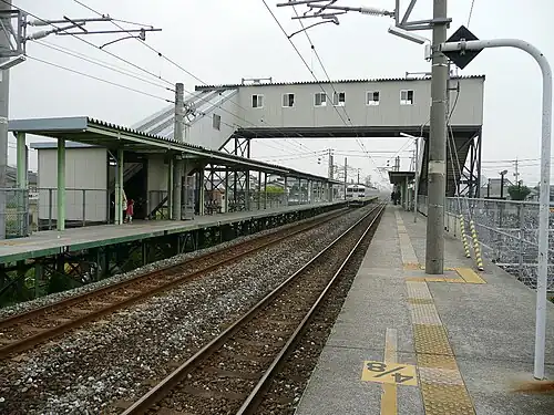 The station consists of two opposed side platforms serving two tracks, connected to the station building by a footbridge. The station is unattended.[2]