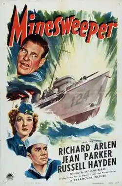 Minesweeper is a 1943 American black-and-white World War II film, produced by William H. Pine and William C. Thomas, directed by William A. Berke, that stars Richard Arlen, Jean Parker, and Russell Hayden. The film was distributed by Paramount Pictures. A former navy deserter returns to duty after the attack on Pearl Harbor under an assumed name as a sailor aboard a minesweeper.