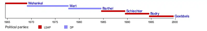 Antoine Wehenkel LSAP 15 July 1964 6 February 1969 Pierre Werner