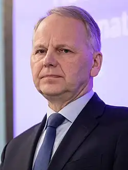 The Minister of Agriculture and Forestry (Finnish: maa- ja metsätalousministeri, Swedish: jord- och skogsbruksminister) is one of the Finnish Government's ministerial portfolios.[1] The minister is in charge of the Ministry of Agriculture and Forestry.[2] Since June 2023, Finland's Minister of Agriculture and Forestry has been Sari Essayah of the Christian Democrats.[3]