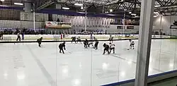 In a sense, Minot and Midland have grown up together, as the Warriors began play at the ACHA Division 1 level in the 2014–15 season, right before MSU found its stride. The teams met for the first time on November 20 and 21, 2015, splitting a series in Fremont, Nebraska. In the first game, Bradi Sveet (two goals), Makayla Sandvold (one goal, two assists), and Kendall Becker (two goals, one assist) played central roles in running the Beavers out to a 4–0 lead in an eventual 6–2 win.[48] Warriors coach Taylor Gross rallied her team for a 5–3 win the next day however, and Midland also earned a sweep later in the year at Maysa Arena, capped off by Malia Shimabukuro's overtime goal.[49]