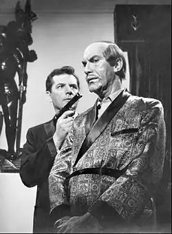 In the third segment of the opening act, called the "apartment scene" by White, the team would convene for their final briefing in the leader's apartment. Although the series was shot in color, the apartment had a black, white, and gray color scheme, such that the apartment was sometimes referred to off-camera as the black-and-white room. Steven Hill once suggested that an American flag be placed on a wall of Briggs' apartment, but Bruce Geller vetoed the idea to maintain the scheme.[23] Two exceptions are the first-season episodes, "Operation Rogosh", when the team immediately springs into action to capture their target in a staged auto accident, and "Action!", where the team meeting took place in another apartment.[24]