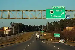 Mississippi Highway 39 (MS 39) is a major south to north highway in the U.S. state of Mississippi. Spanning 49.7 miles (80.0 km), it connects Meridian and NAS Meridian with DeKalb and Shuqualak.