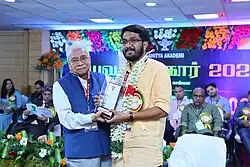 - ^ "Sahitya Akademi - #SahityaAkademi Mobin Mohan #YuvaPuraskar 2021 awardee in #Malayalam speaking about his Novel "Jacaranda" today during Writers' Meet at Chennai. #AmritMahotsav Amrit Mahotsav, Kishan Reddy Gangapuram, Arjun Ram Meghwal, Meenakshi Lekhi, Ministry of Culture, Government of India, Sreenivasarao Kruthiventi, Press Information Bureau - PIB, Government of India, Ministry of Information & Broadcasting, Government of India, Doordarshan National (DD1) | Facebook". www.facebook.com. Retrieved 8 April 2022.