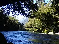 The Moeraki River is a river of the West Coast Region of New Zealand's South Island. It flows west from the Southern Alps, veering northwest as it approaches the coast. It flows into the eastern end of the small Lake Moeraki before flowing out the western end to reach the Tasman Sea 20 kilometres northeast of Haast.