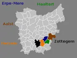 ![]() East Flanders, in color the municipalities of the basin of the Molenbeek-Ter Erpenbeek. | |