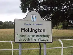 Mollington is a civil parish and local government ward, within the unitary authority of Cheshire West and Chester. In 2001, it had a population of 2,077, which included the settlements of Backford, Capenhurst, Ledsham and Wervin.[12] By 2011 this ward had been combined with Saughall, with a total population of 4,463.[13]