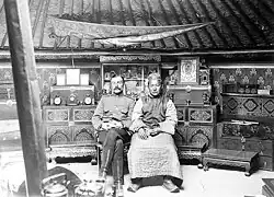 Despite his young age, Buyan-Badyrgy was described by historian Tyntchtykbek Tchoroev as "a natural diplomat who was intelligent, self-confident, flexible, and able to make concessions."[11] In his first years as a noyon, Buyan-Badyrgy followed after his adoptive father's policy and tried to maintain friendly relations with China.[12] His policy was described as "generally anti-Russian and pro-Chinese."[13] This was evidence by him attempting to stop trade with Russia, and his creation of an army of 2,000 soldiers that protected Chinese trading ports in Tuva.[14] In 1911, a revolution occurred in China which led to the overthrow of the Qing Dynasty, and this resulted in the question arising of the fate of the Tuva region (which was under the rule of China during the dynasty).[14] At the end of the year, the rulers of each kozhuun in Tuva decided to hold a congress.[14] The congress convened in January 1912, and featured varying opinions on what should be done to Tuva.[14] The amban-noyon promoted the idea of joining Russia, with his faction arguing in favor due to the goods that Russian traders had brought, contrasting them with the Chinese who "did not supply the population with necessary consumer goods" which left the Tuvans in poverty.[14]