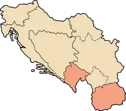 The Socialist Republic of Montenegro and the Socialist Republic of Macedonia inside Yugoslavia