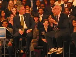 U.S. President George W. Bush and Ben Stein, a 1962 alumnus of the school, attend a June 2005 event at the school.