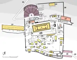 Plan of the Sanctuary of Apollo at Delphi; the Monument of Aemilius Paullus is marked as no. 27