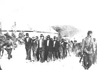 The killings at Ivanović Jarak had proven to be the impetus for the uprising in Kordun. Rebellion efforts were led by Partisan groups from both Kordun and Banija under Vasilj Gaćeša and Ivan Rukavina, and in early August, several encounters between the Partisans and the Ustaše occurred around the city of Slunj.[8] By 8 or 9 August major ethnic cleansing operations had ceased in much of Croatia; however, murders continued under the direction of Ante Pavelić and Slavko Kvaternik, particularly in regions that had previously been the sites of rebellion, including Petrova Gora.[9][b] Despite occasional victories by rebel groups, such as the liberation of Vojnić in January, by early 1942 civilian and rebel populations in Kordun and Banija had been ravaged, and in May, thousands of people in the villages around Petrova Gora were killed.[10]