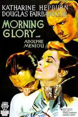 Morning Glory is a 1933 American Pre-Code drama film which tells the story of an eager would-be actress and her journey to stardom, and her gains and losses. The picture stars Katharine Hepburn, Douglas Fairbanks Jr., and Adolphe Menjou, was adapted by Howard J. Green from a then-unproduced stage play of the same name[2] by Zoë Akins, and was directed by Lowell Sherman. Hepburn won her first Academy Award for Best Actress. Morning Glory was remade in 1958 under the title Stage Struck.