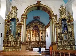 There are six side altars, dedicated to Saint Barbara, Michael the Archangel, Saint Anne, the Holy Spirit, Our Lady of the Rosary, and Our Lady of Sorrows, all with various levels and niches for other secondary images. They present a Rococo carving of vigorous and elegant inspiration, polished finish, and with trimmings that resemble flames, being all of the same general design but all different in details, which gives unity and at the same time variety to the internal decoration.[5][7]